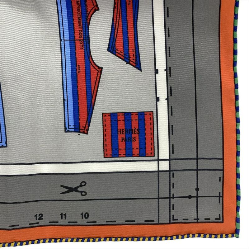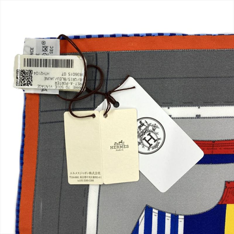 5. エルメス HERMES カレ 70 プレタポルテ スカーフ シルク ブルー PRET A PORTER ミニ【中古】