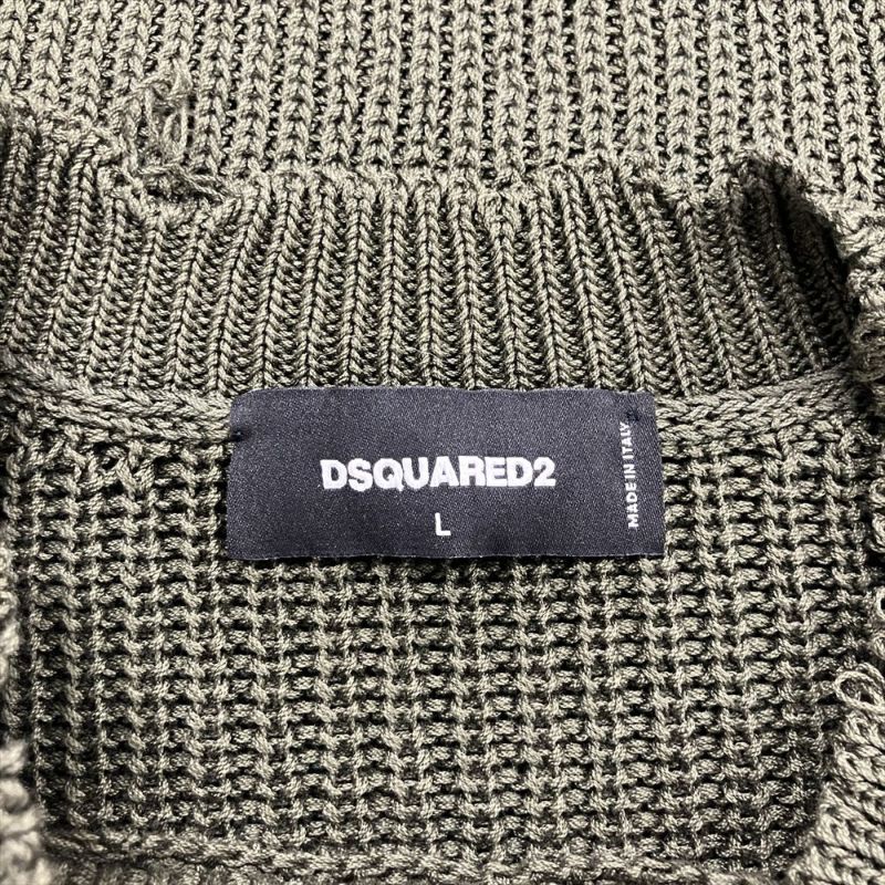4. ディースクエアード DSQUARED2 デストロイ ニット コットン S74HA1290 カーキ L メンズ【中古】