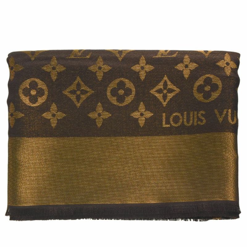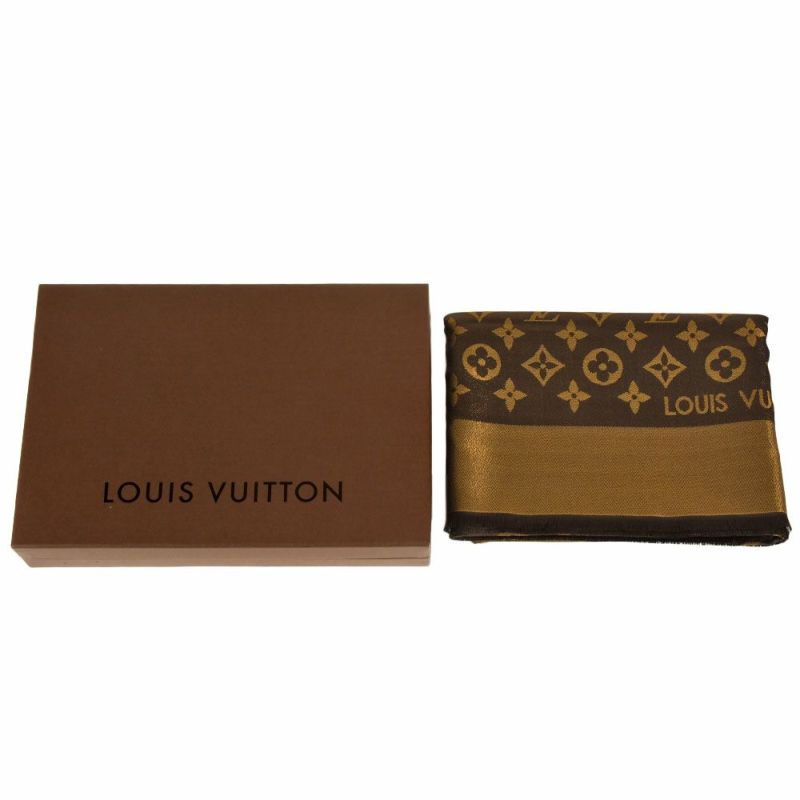 美品 ルイヴィトン LOUIS VUITTON ショール・モノグラム・シャイン スカーフ M75122 マロン ブラウン ユニセックス【中古】