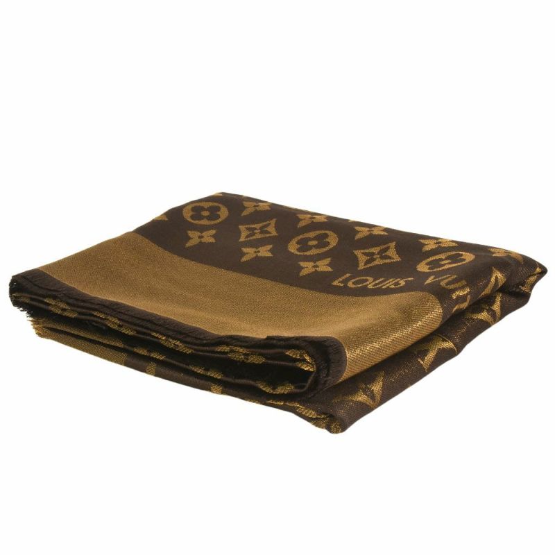 3. ルイヴィトン LOUIS VUITTON ショール・モノグラム・シャイン スカーフ M75122 マロン ブラウン ユニセックス【中古】