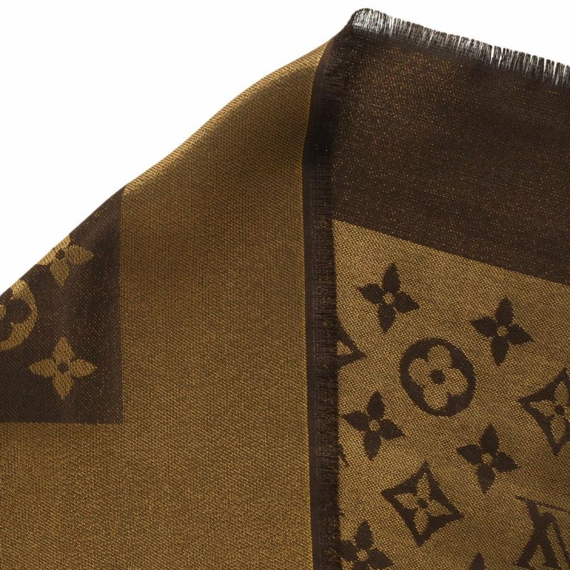 5. ルイヴィトン LOUIS VUITTON ショール・モノグラム・シャイン スカーフ M75122 マロン ブラウン ユニセックス【中古】