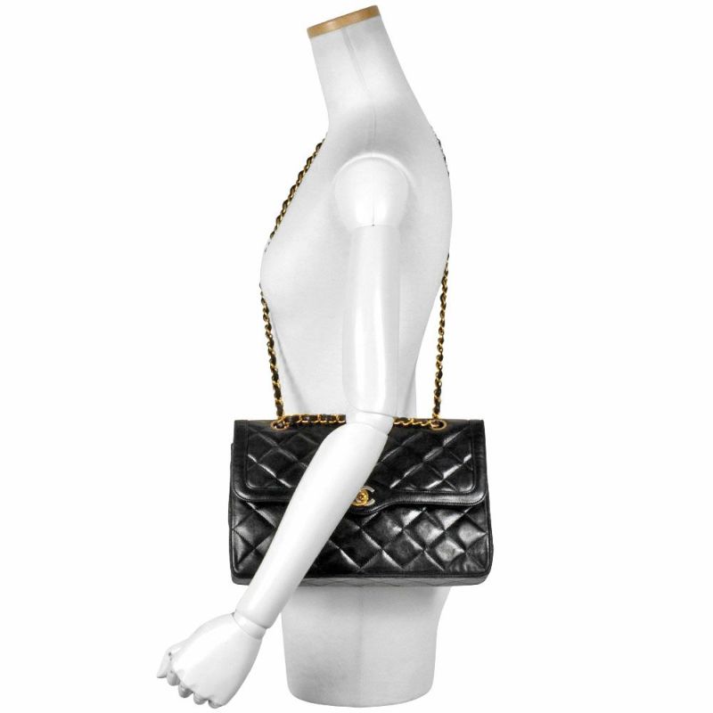 3. シャネル CHANEL マトラッセ Wフラップ チェーン ショルダーバッグ ラムスキン ブラック ゴールド金具 ココマーク パリ限定【中古】