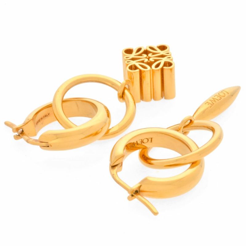 5. ロエベ LOEWE アナグラム アシンメトリー ピアス 真鍮g ゴールド ロゴ スイング レディース【中古】