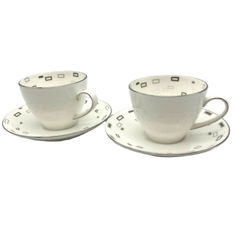 4. タサキ TASAKI ティーカップ 陶磁器 ホワイト カップ&ソーサー 2客 箱入り【中古】