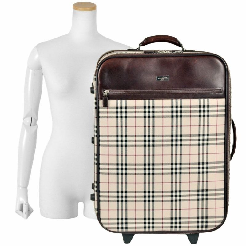 3. バーバリー BURBERRY ノバチェック キャリーバッグ キャンバス レザー ブラウン【中古】