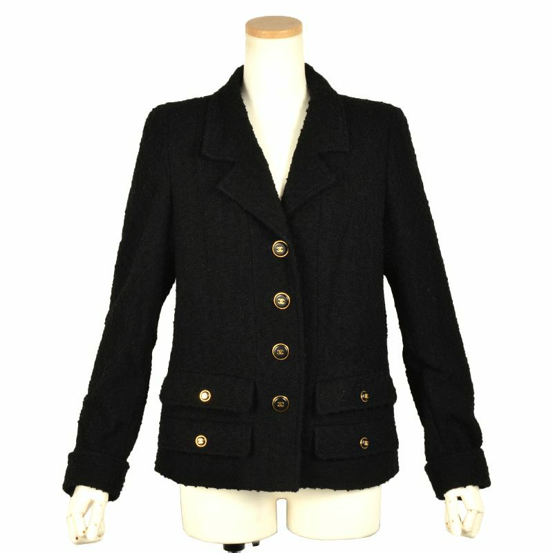 - シャネル CHANEL ツィード ジャケット ブルゾン ウール ポリアミド P05277V204277 ブラック 38 ココマークボタン 95A【中古】