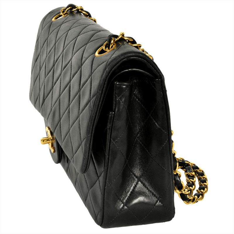 3. シャネル CHANEL マトラッセ 25 Wフラップ チェーン ショルダーバッグ ラムスキン ブラック ゴールド金具 ココマーク 2番台 レディース【中古】
