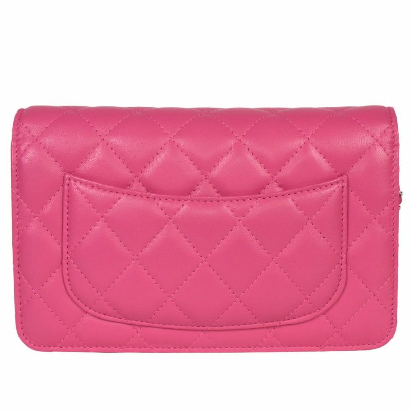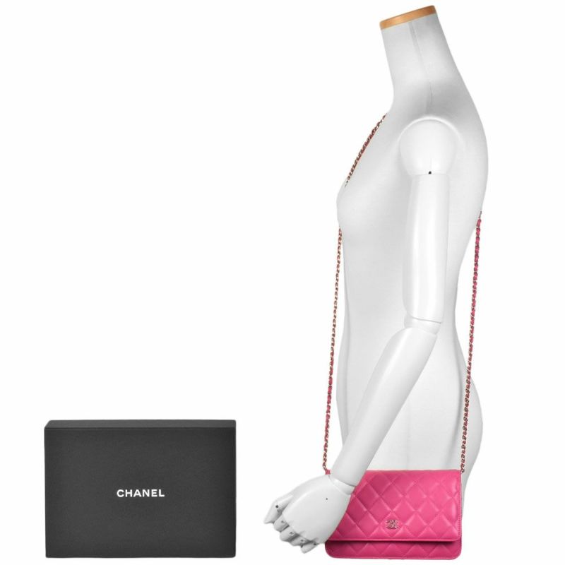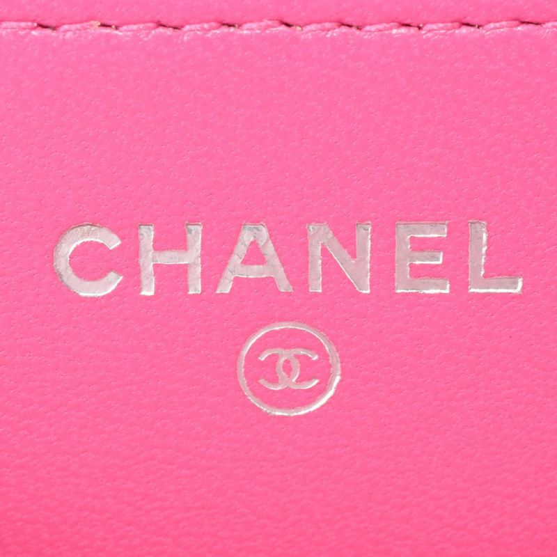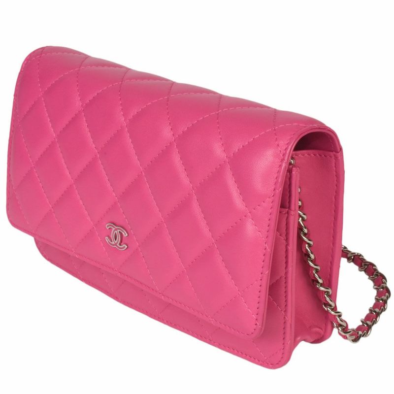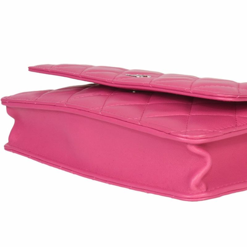 4. シャネル CHANEL マトラッセ ココマーク チェーンウォレット ショルダーバッグ ラムスキン A33814 ピンク シルバー金具【中古】