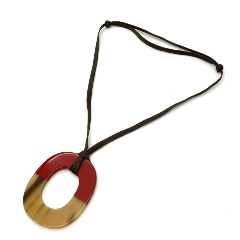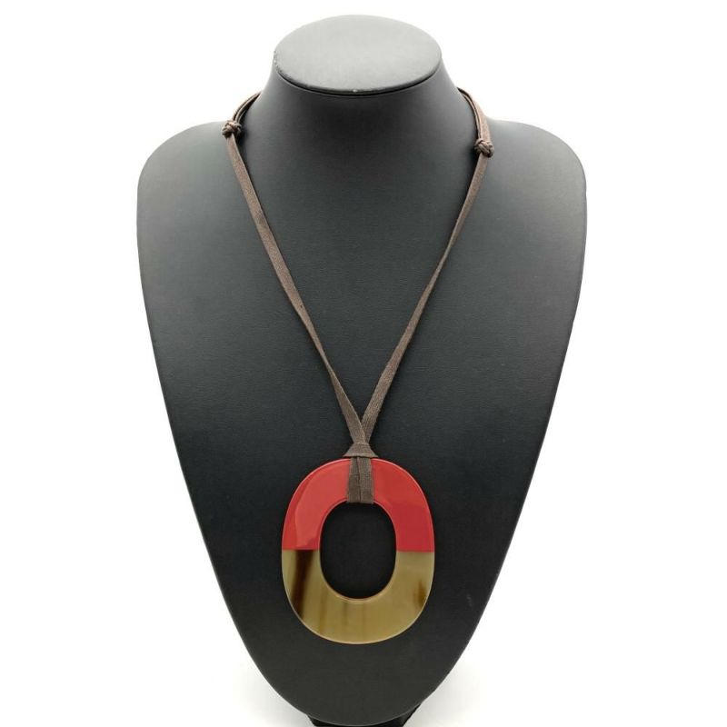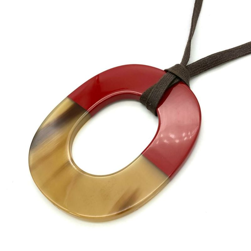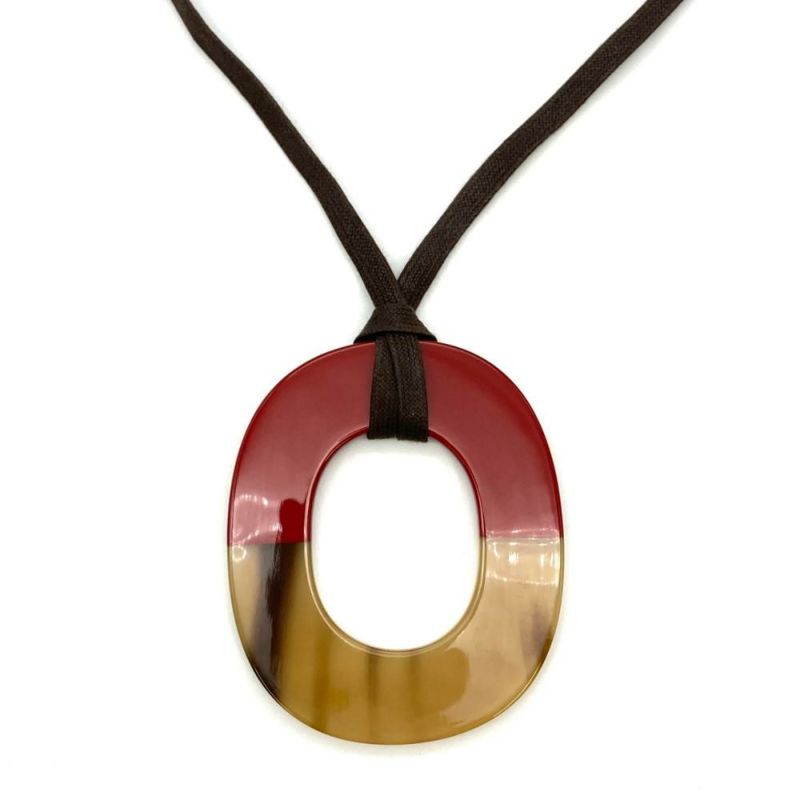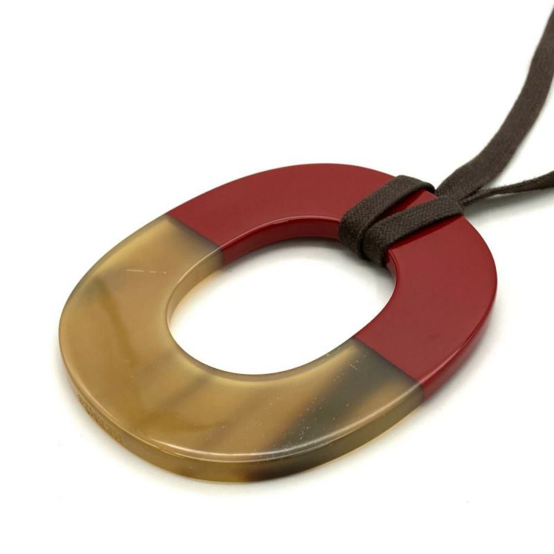 3. エルメス HERMES イスム ペンダント ネックレス バッファローホーン レッド レディース【中古】