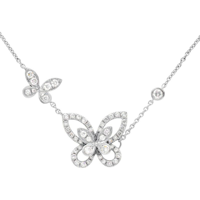 グラフ GRAFF ダブル バタフライ シルエット ネックレス ダイヤモンド K18WG 5.1g ホワイトゴールド レディース【中古】