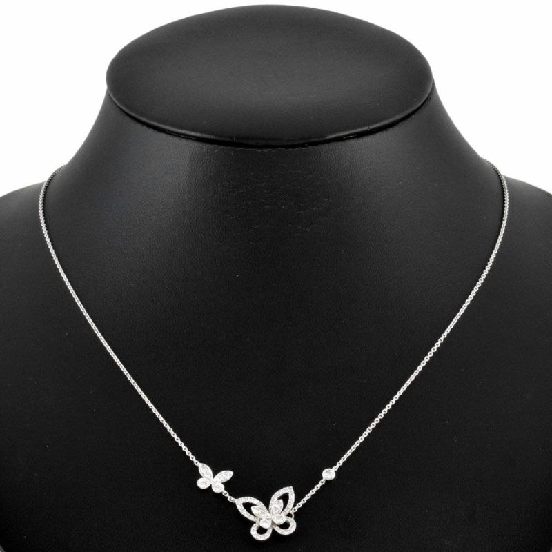 5. グラフ GRAFF ダブル バタフライ シルエット ネックレス ダイヤモンド K18WG 5.1g ホワイトゴールド レディース【中古】