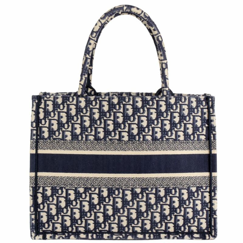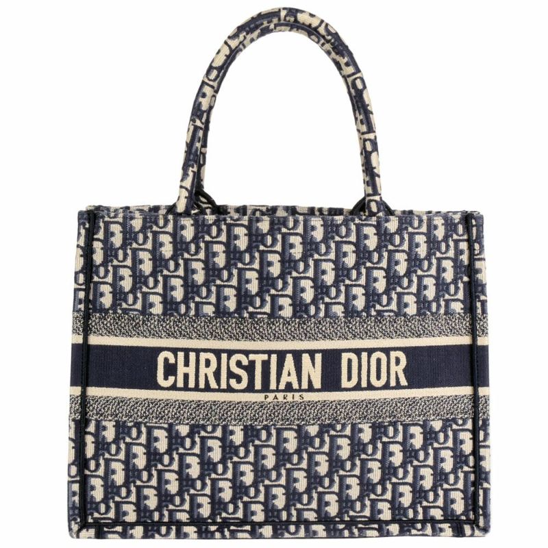 3. ディオール Dior オブリーク エンブロイダリー ブックトート ミディアム トートバッグ キャンバス M1296ZRIW ネイビー ハンドバッグ【中古】