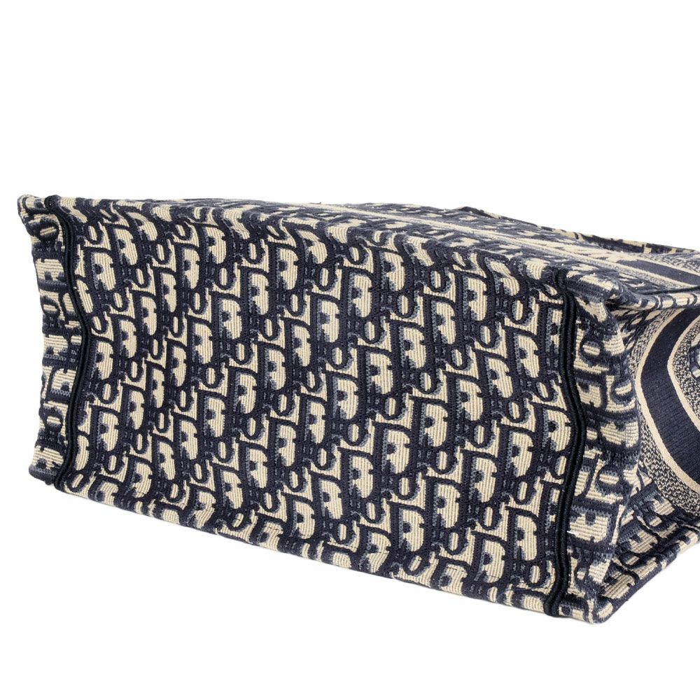 4. ディオール Dior オブリーク エンブロイダリー ブックトート ミディアム トートバッグ キャンバス M1296ZRIW ネイビー ハンドバッグ【中古】