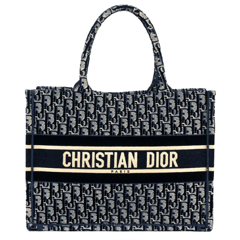 ディオール Dior オブリーク エンブロイダリー ブックトート ミディアム トートバッグ キャンバス M1296ZRIW ネイビー ハンドバッグ【中古】