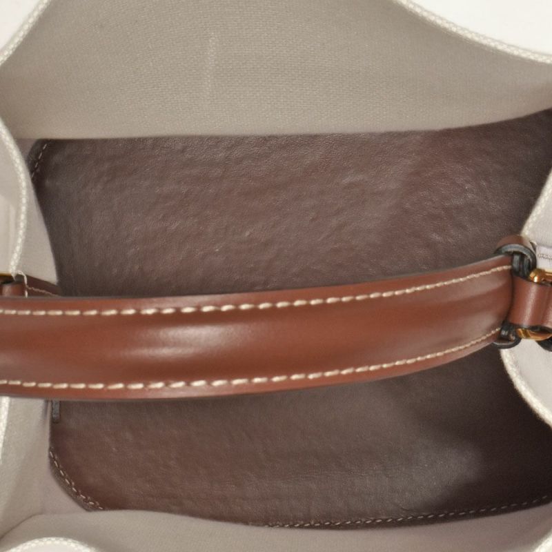 5. バーバリー BURBERRY スモール ロゴグラフィック コットンキャンバス ペギー バケットバッグ ショルダーバッグ キャンバス レザー TIVITP1262 ナチュラル【中古】
