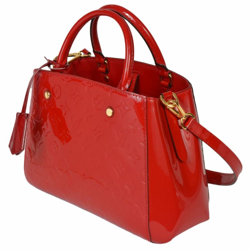 3. ルイヴィトン LOUIS VUITTON モンテーニュ BB ハンドバッグ 2WAY モノグラム ヴェルニ M50187 レッド ゴールド金具 CA0125【中古】