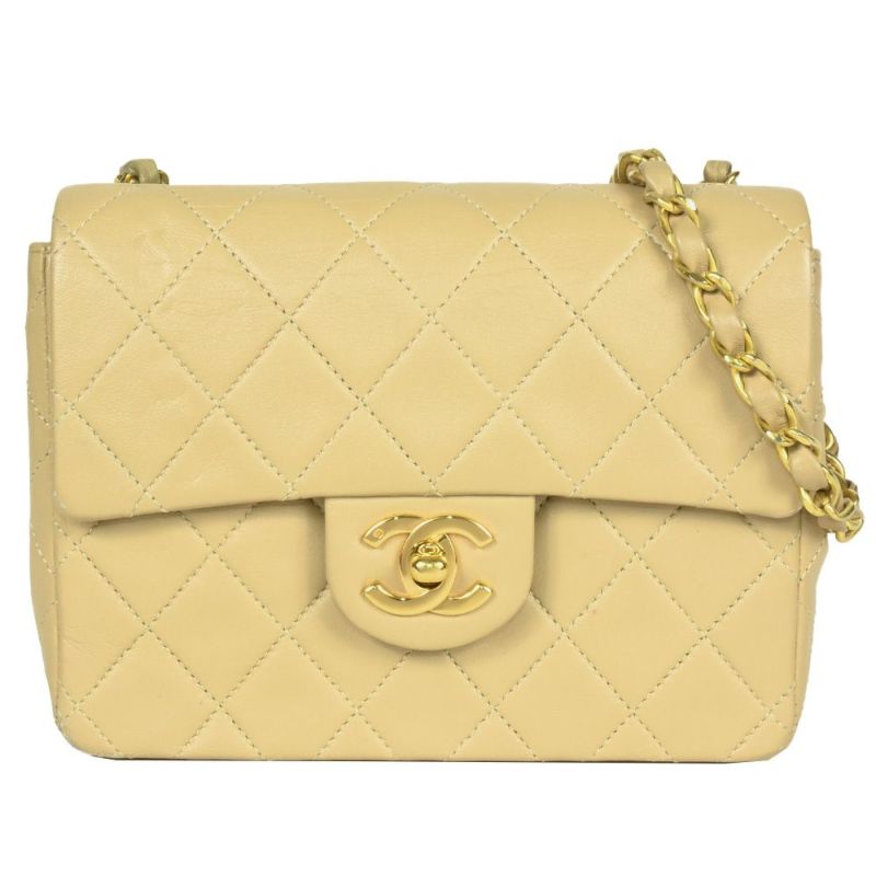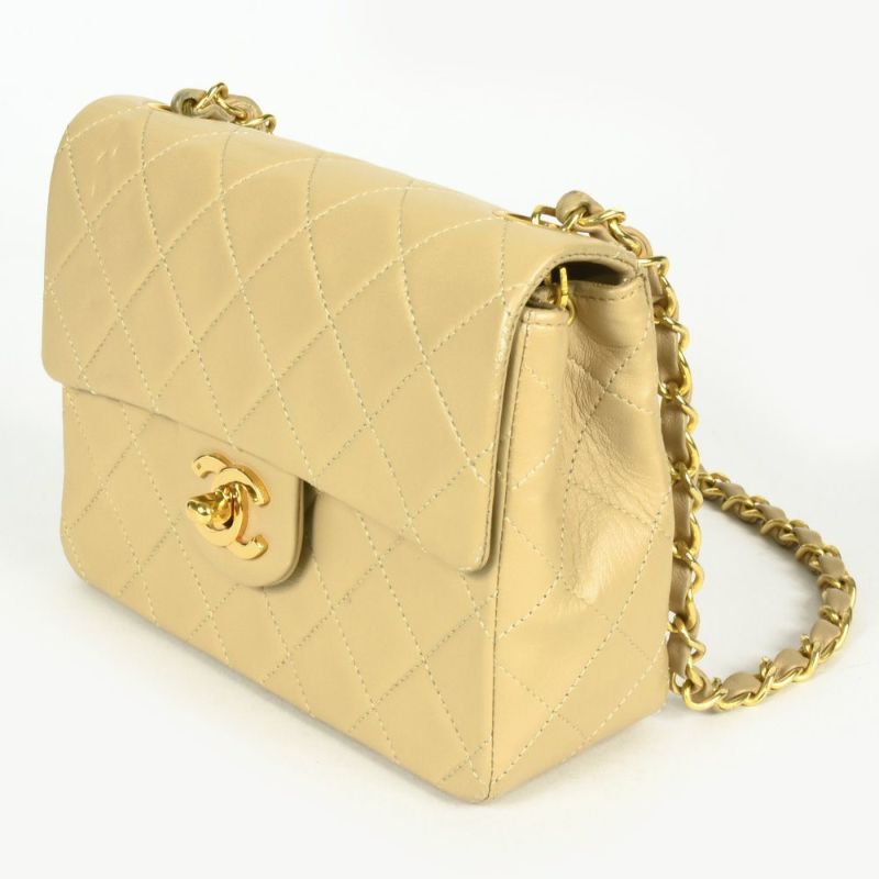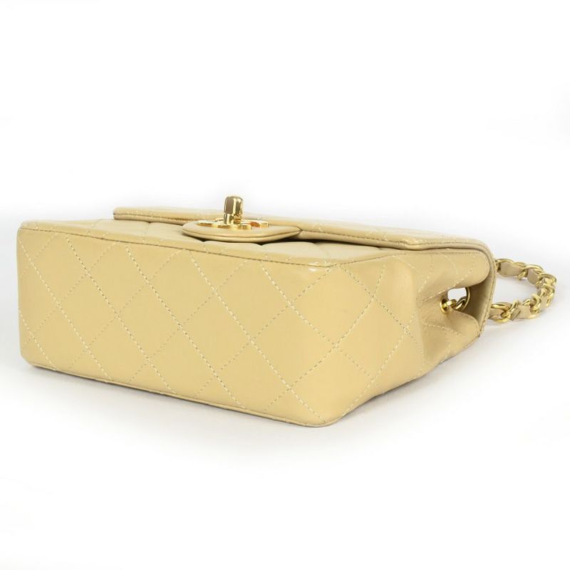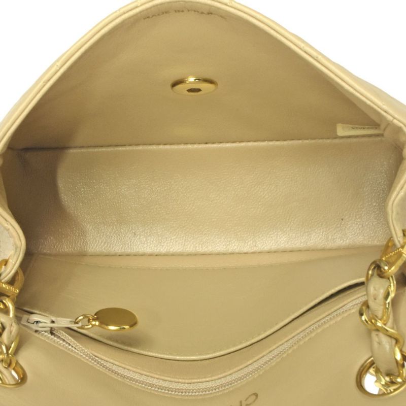 3. シャネル CHANEL ココマーク ミニマトラッセ シングルフラップ チェーン ショルダーバッグ ラムスキン A01115 ベージュ 1番台(1990~1992年頃製造)【中古】