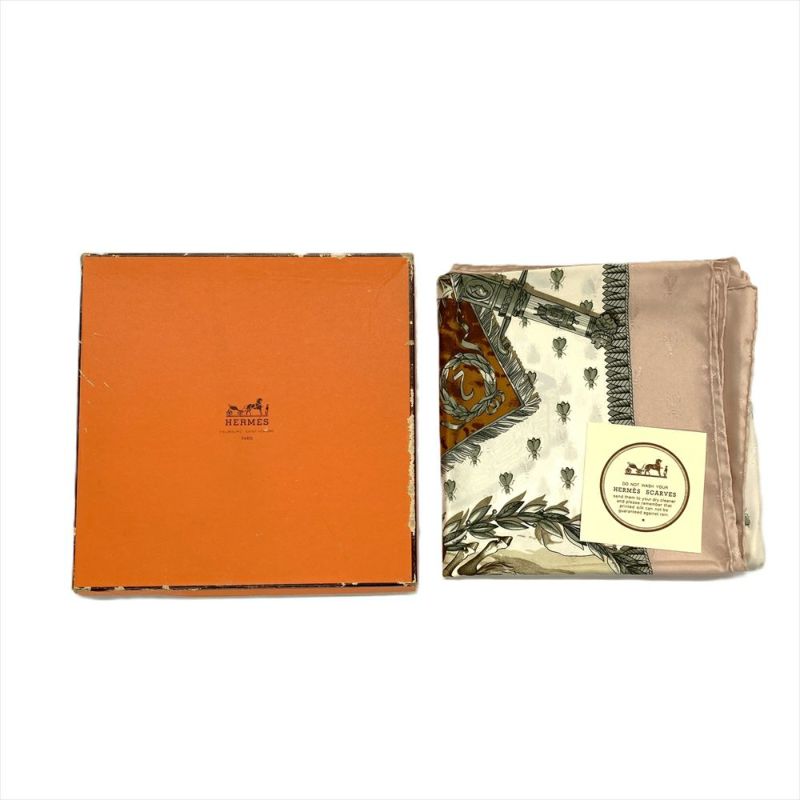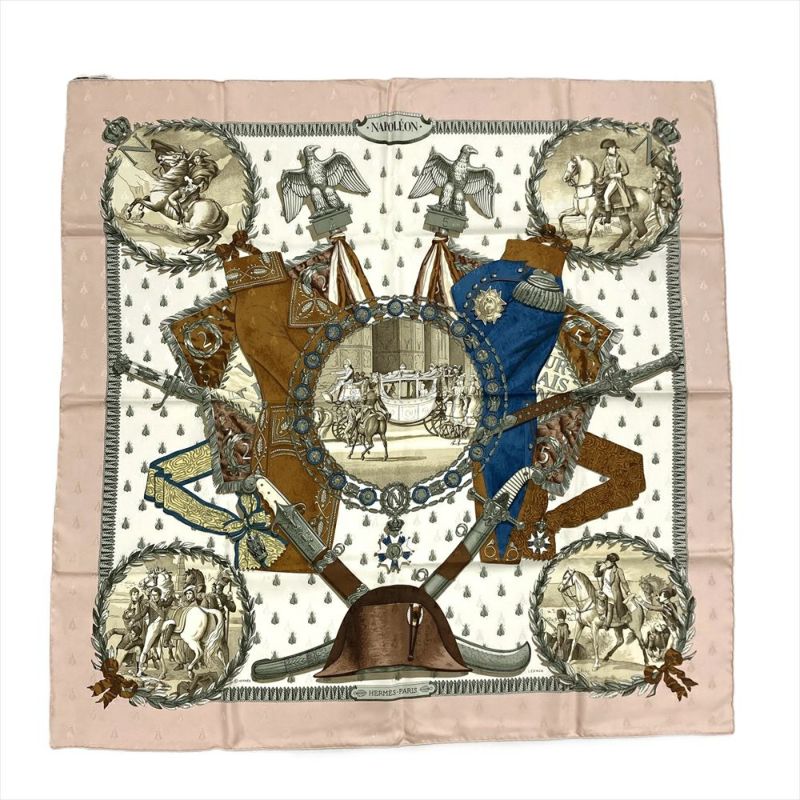 3. エルメス HERMES ナポレオン NAPOLEON スカーフ シルク ピンク【中古】