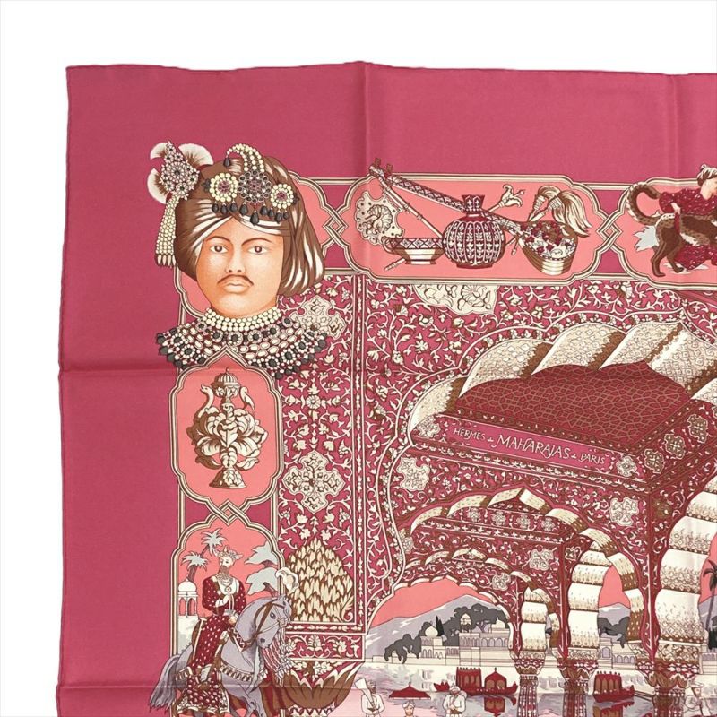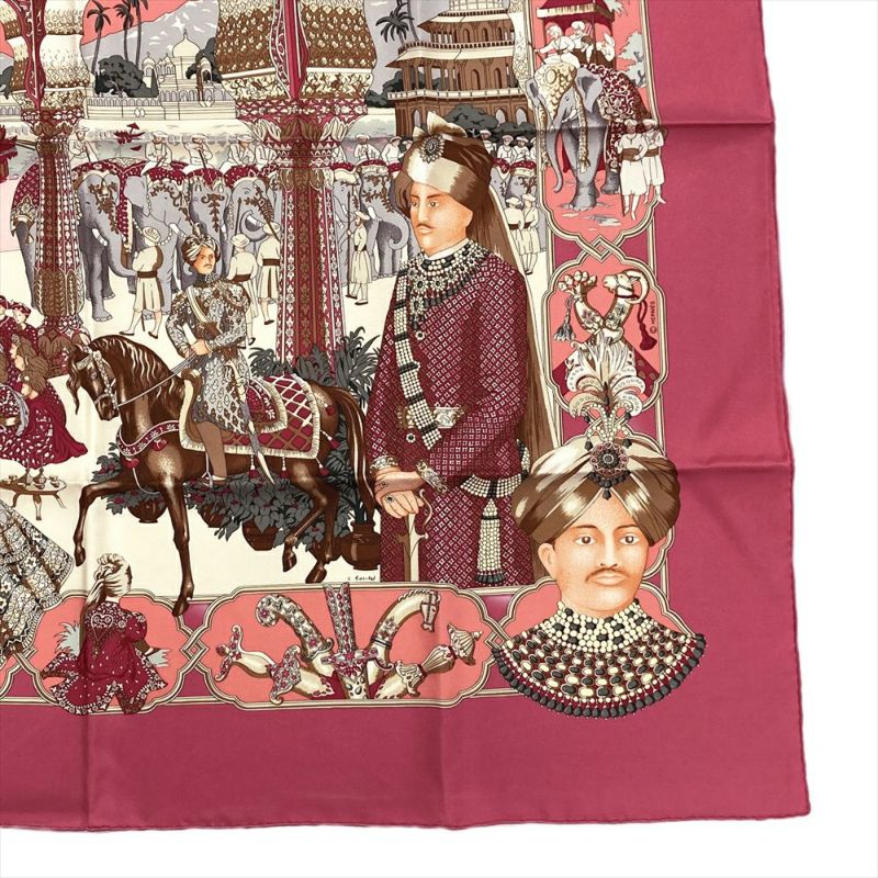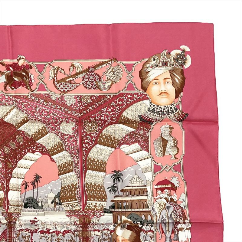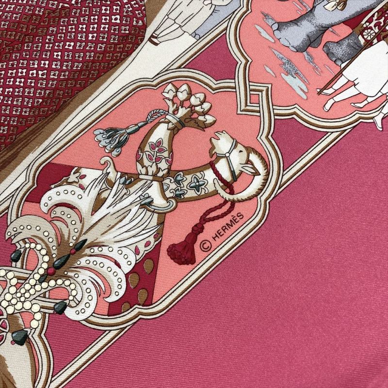 4. エルメス HERMES カレ90 マハラジャの華麗 SPLENDEUR DES MAHARAJAS スカーフ シルク ピンク【中古】