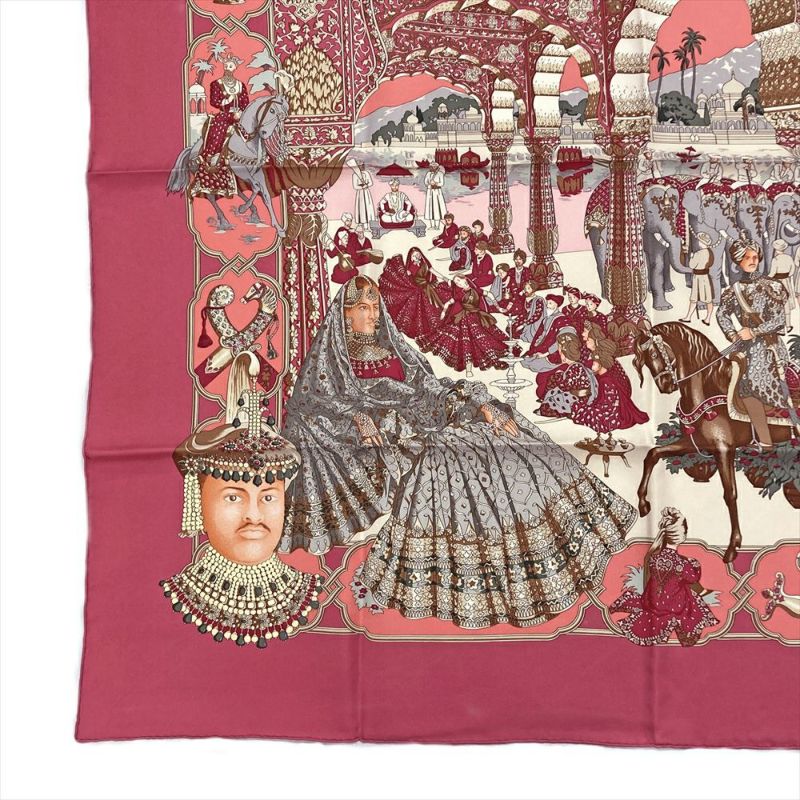 5. エルメス HERMES カレ90 マハラジャの華麗 SPLENDEUR DES MAHARAJAS スカーフ シルク ピンク【中古】