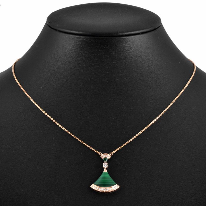 3. ブルガリ BVLGARI ディーヴァ ドリーム ネックレス ダイヤモンド 351143 K18PG 7.3g マラカイト ピンクゴールド レディース【中古】
