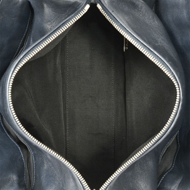 5. シャネル CHANEL チョコバー ハンドバッグ ラムスキン ネイビー シルバー金具 7桁7番台 レディース【中古】