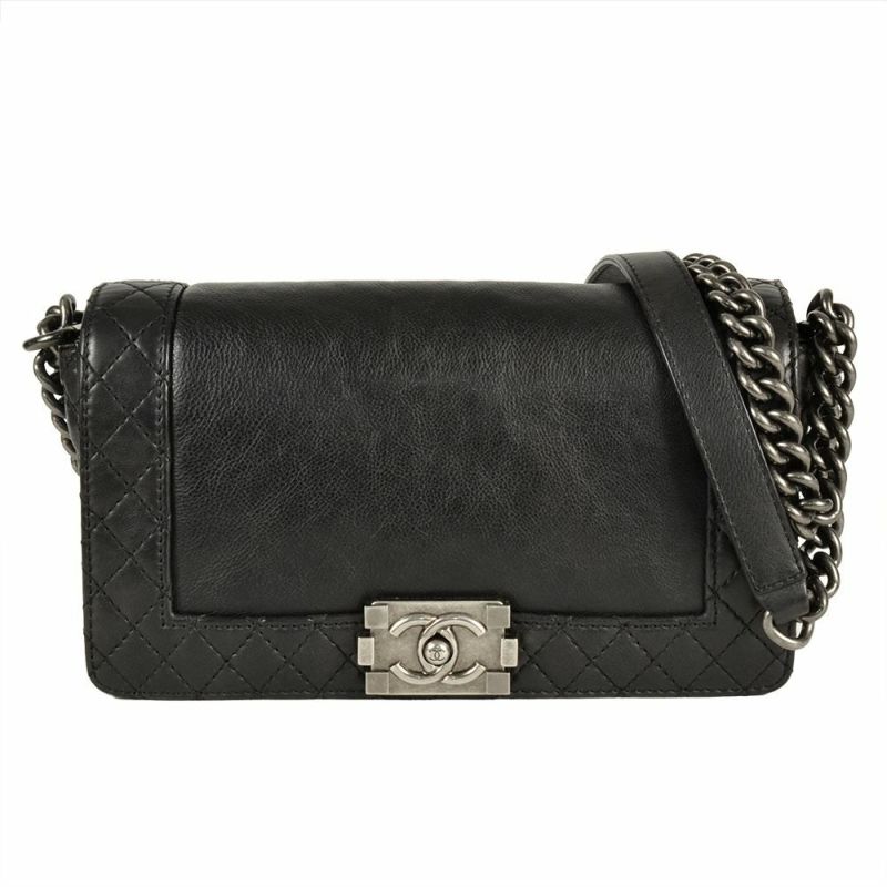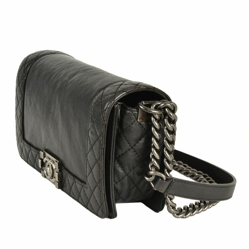 5. シャネル CHANEL ボーイシャネル ショルダーバッグ カーフスキン A92193 ブラック シルバー金具 18番台 レザー ココマーク【中古】