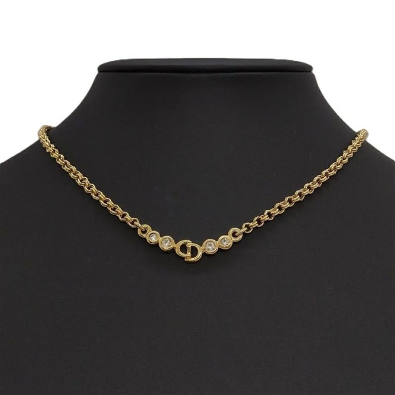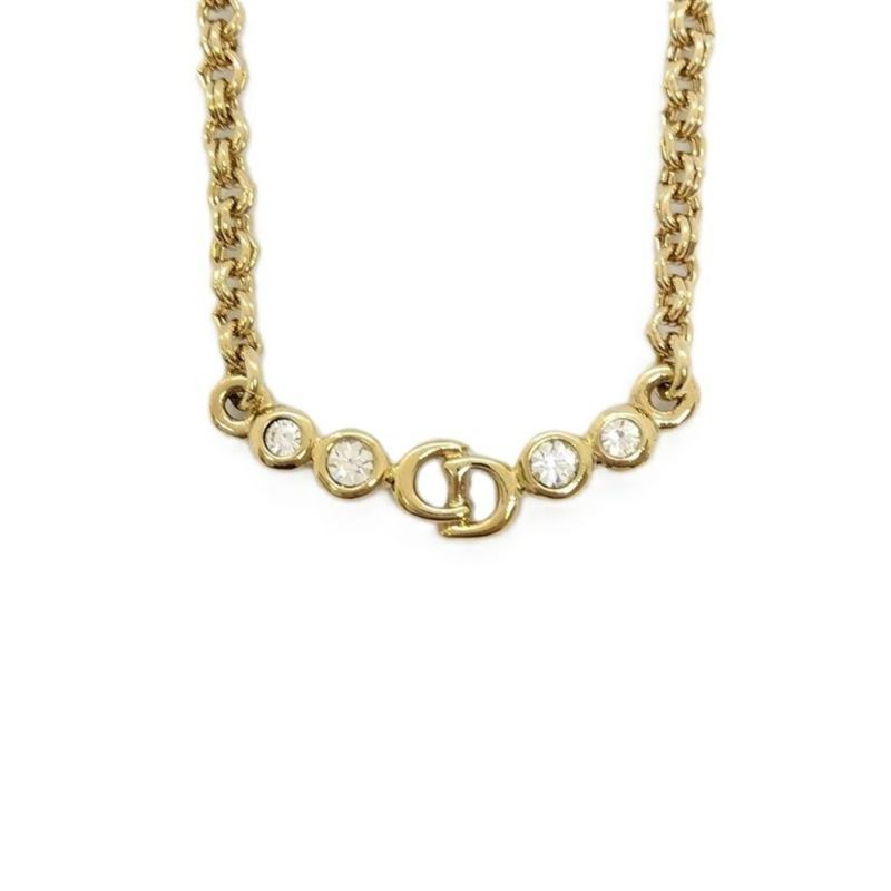 3. クリスチャンディオール Christian Dior CDロゴ 4P ラインストーン GP ネックレス ゴールド【中古】