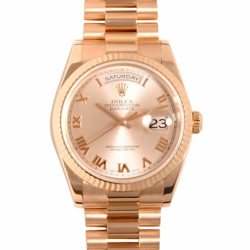 - ロレックス ROLEX 118235 デイデイト K番 腕時計 ピンク文字盤 K18PG 金無垢 メンズ【中古】