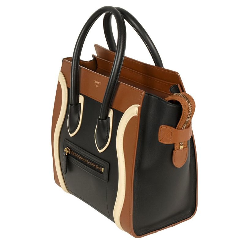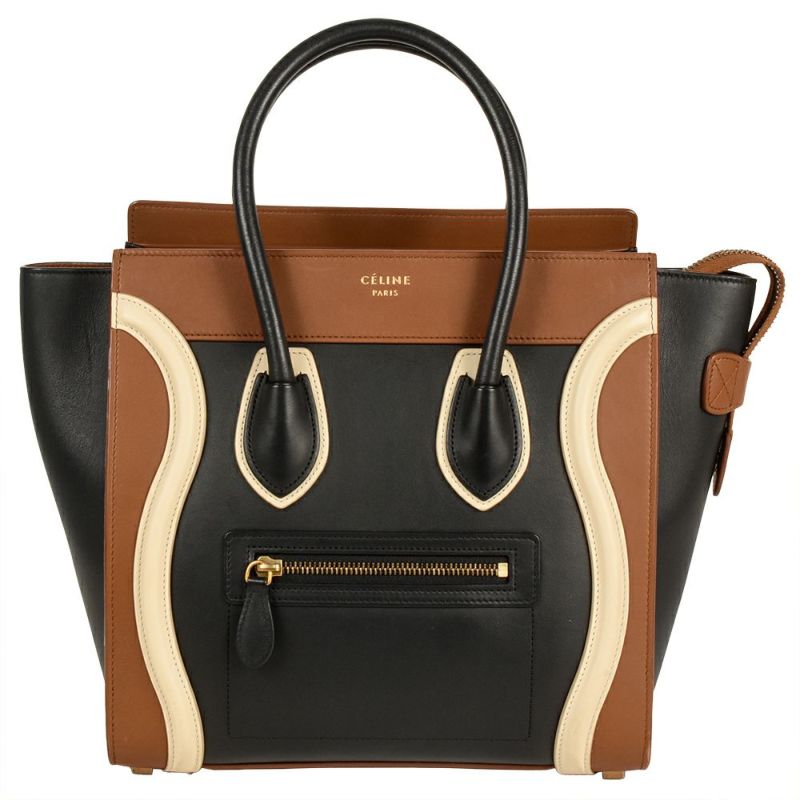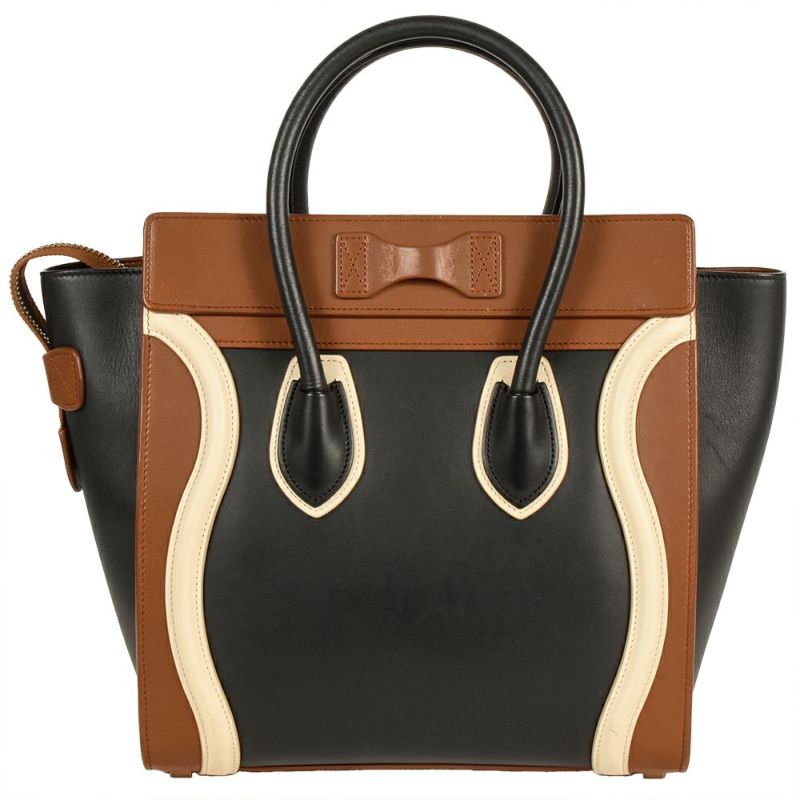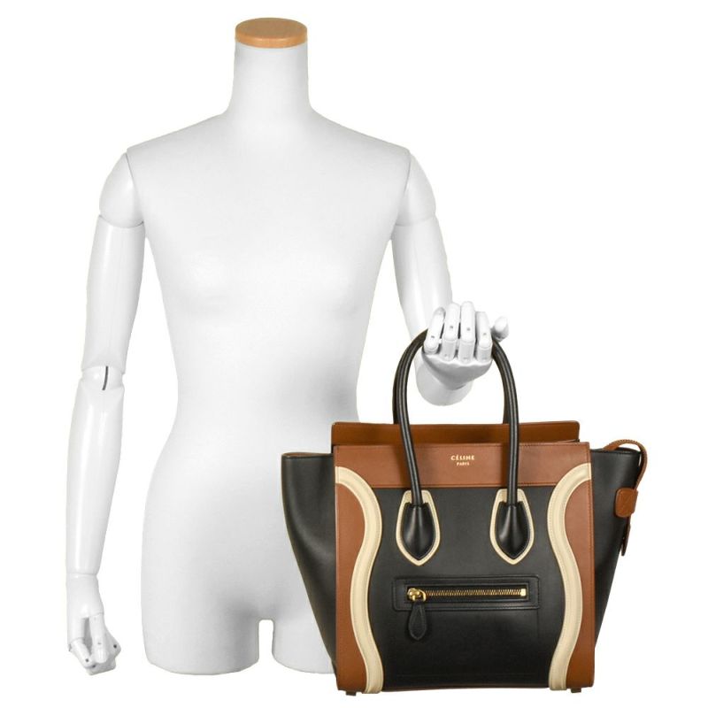 3. セリーヌ CELINE ラゲージ マイクロ ショッパー ハンドバッグ レザー W-CU-2155 ブラック マルチカラー レディース【中古】