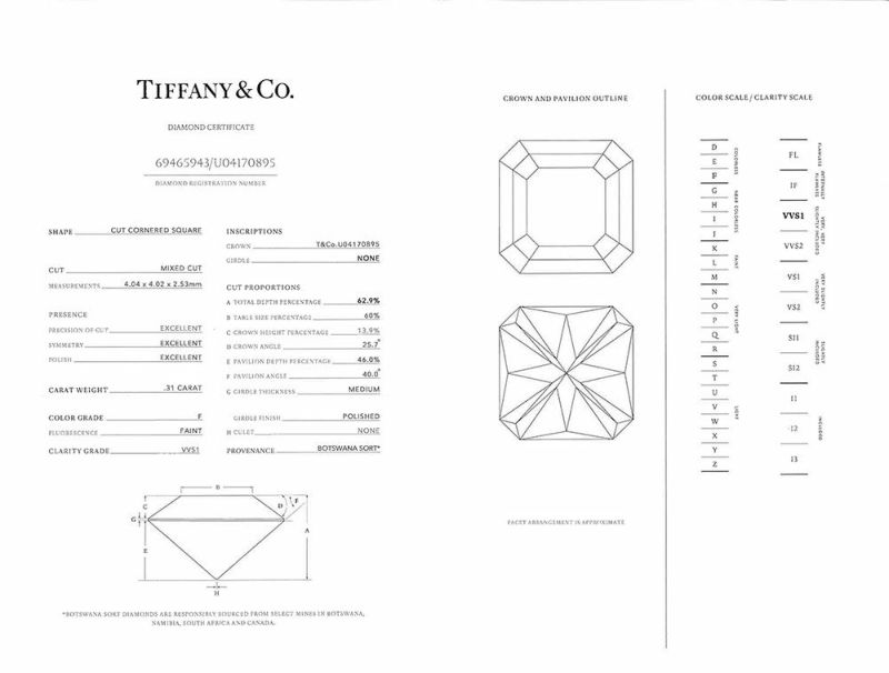 付属品 メーカー純正外箱、メーカー純正内箱、ティファニー鑑定書