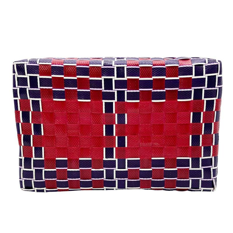 5. マルニ MARNI フラワーカフェ バスケット かごバッグ ハンドバッグ レッド マルチカラー 編み込み レディース【中古】