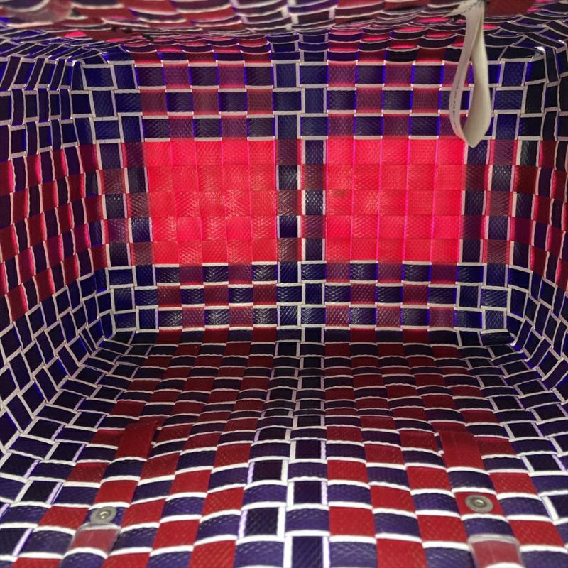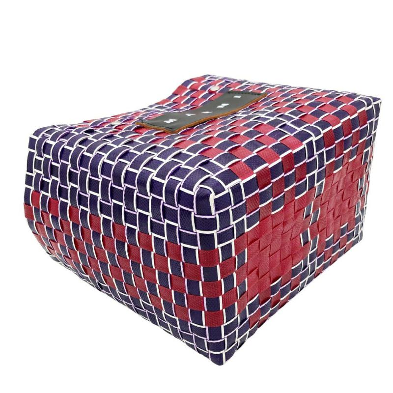 3. マルニ MARNI フラワーカフェ バスケット かごバッグ ハンドバッグ レッド マルチカラー 編み込み レディース【中古】