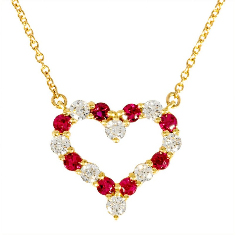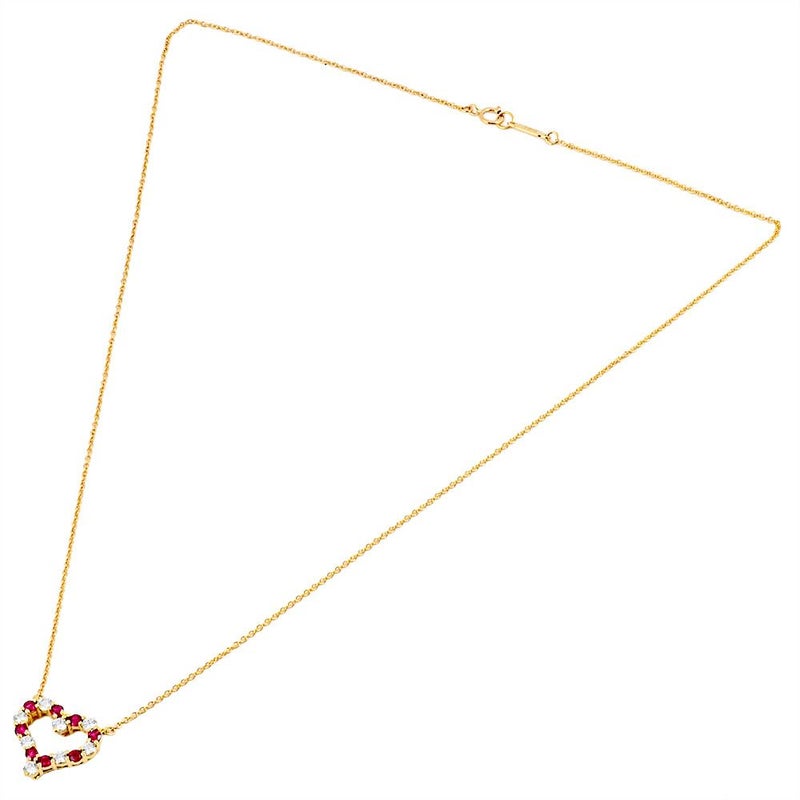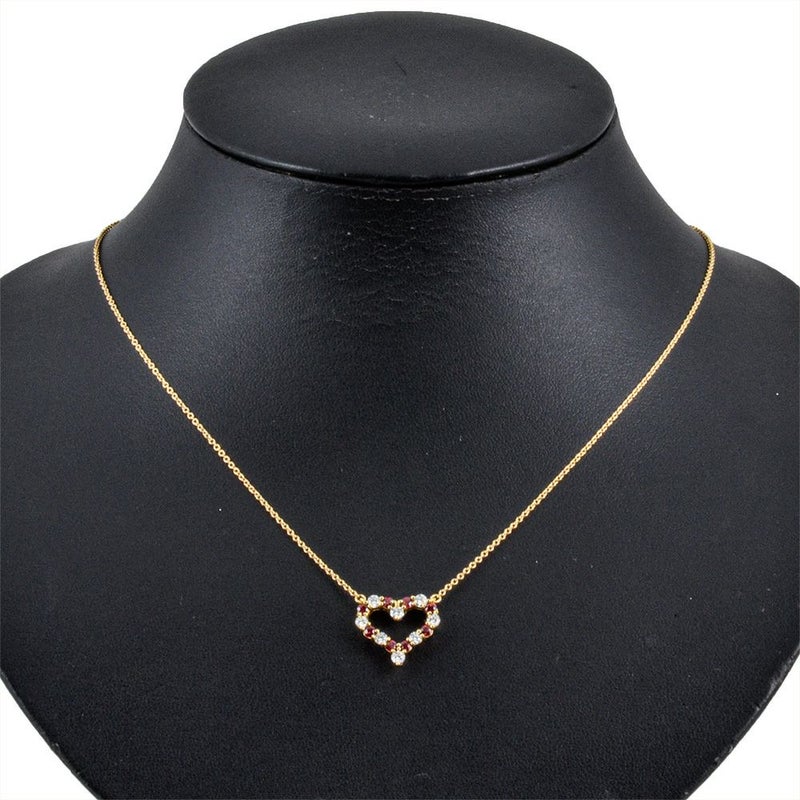 - ティファニー Tiffany&Co. センチメンタル ハート ミディアム ネックレス ダイヤモンド K18YG 3.5g ルビー イエローゴールド レディース【中古】