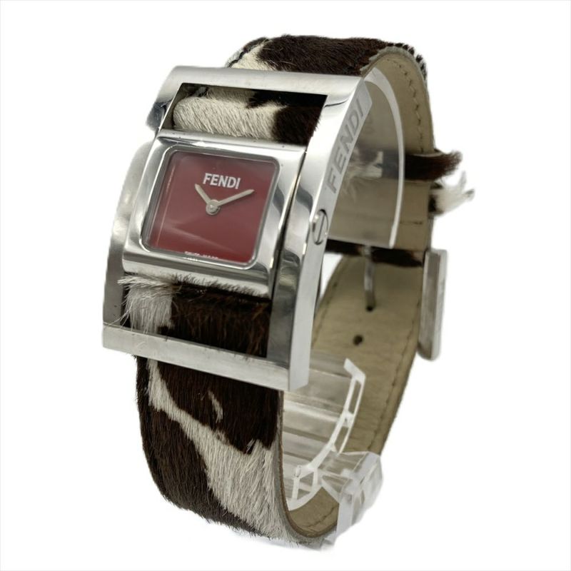 3. フェンディ FENDI F5000 ジャイロ 腕時計 レッド文字盤 ハラコ ベルト レディース【中古】