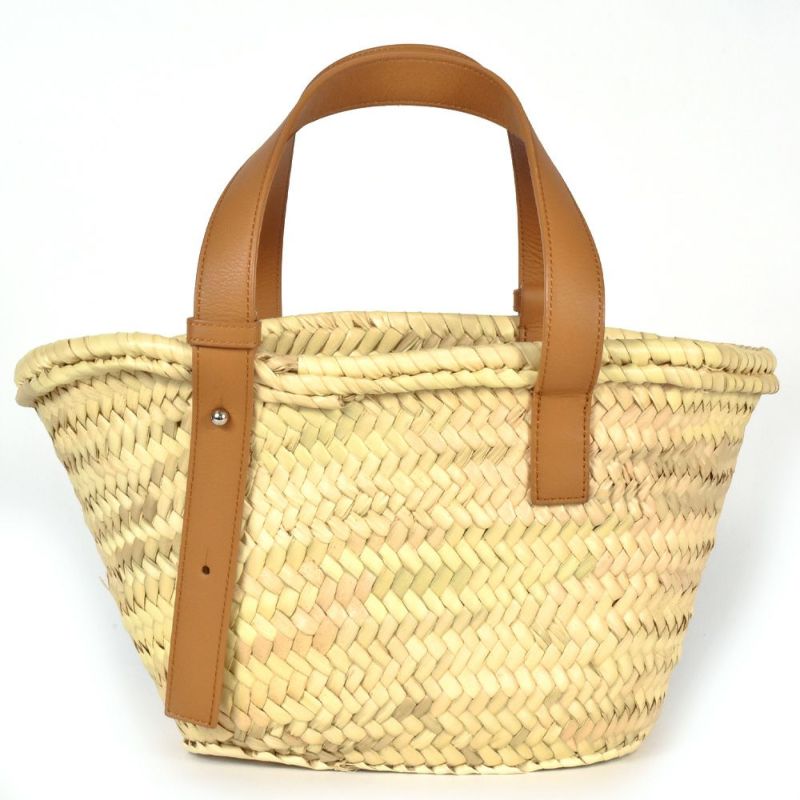 3. ロエベ LOEWE バスケットバッグ スモール ハンドバッグ A223S93 ナチュラル パームリーフ ヤシの葉 カーフ【中古】