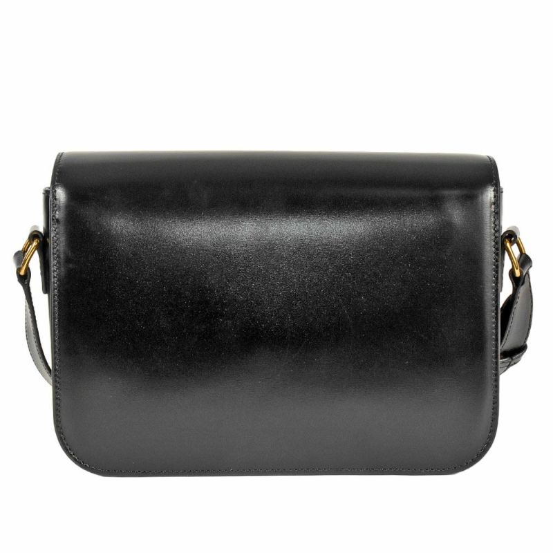 3. セリーヌ CELINE クラシック トリオンフ バッグ ショルダーバッグ 187363BF4.38NO ブラック ゴールド金具 シャイニーカーフスキン【中古】