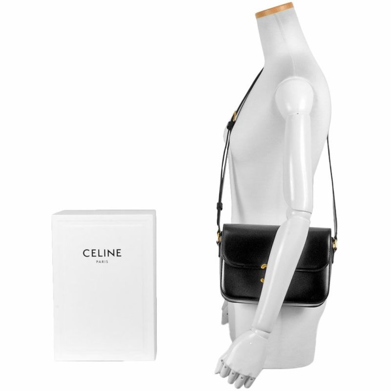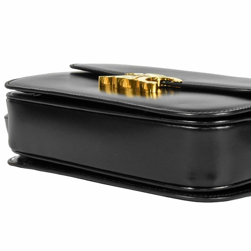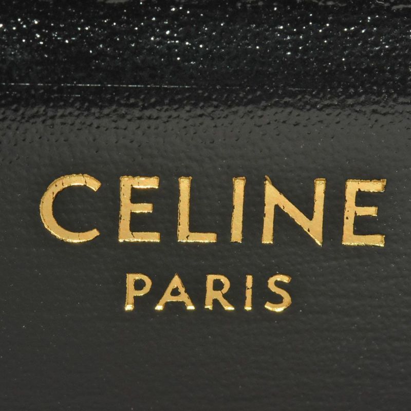 5. セリーヌ CELINE クラシック トリオンフ バッグ ショルダーバッグ 187363BF4.38NO ブラック ゴールド金具 シャイニーカーフスキン【中古】