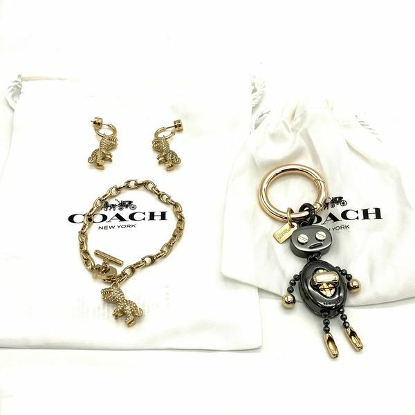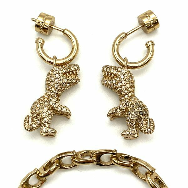 5. コーチ COACH 3点 セット まとめ パヴェ レキシー ブレスレット ハギー ピアス ロボット チャーム ゴールド【中古】