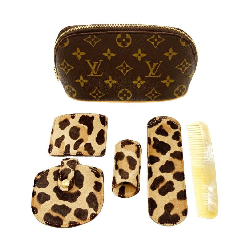 5. ルイヴィトン LOUIS VUITTON アズディンアライア アルマ ハンドバッグ モノグラム キャンバス ハラコ M99032 ブラウン BA1925 レオパード 小物セット 限定 レディース【中古】