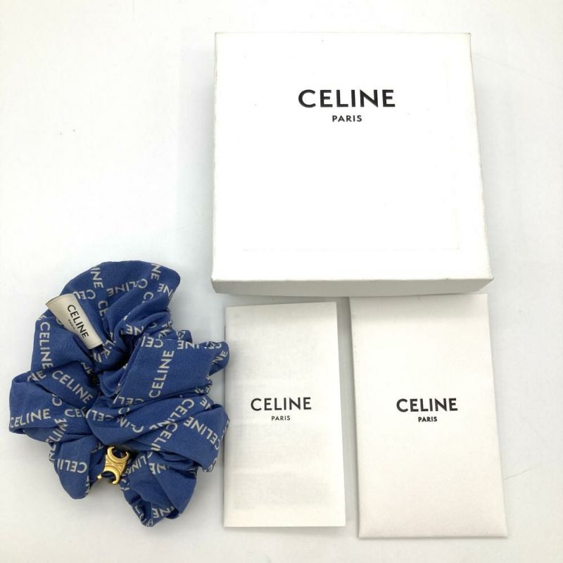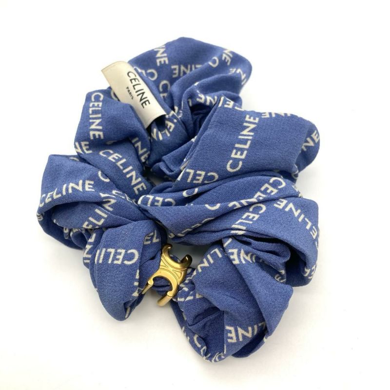 3. セリーヌ CELINE トリオンフ シュシュ カチューシャ ヘアバンド シルク ブルー【中古】