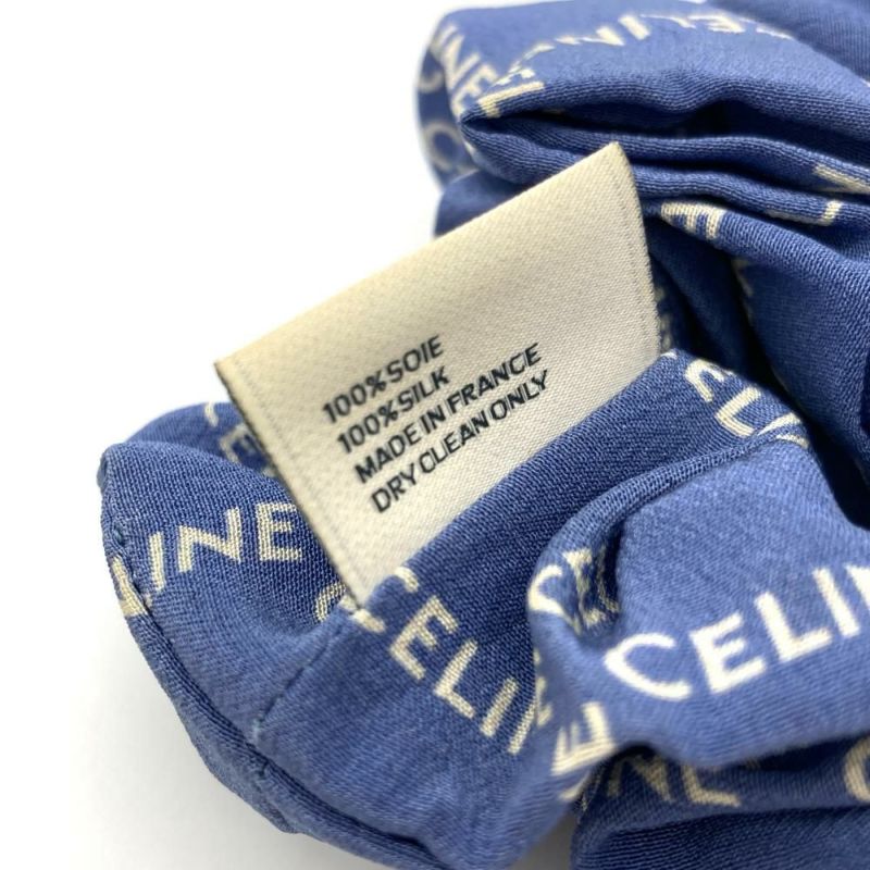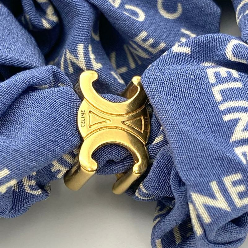 5. セリーヌ CELINE トリオンフ シュシュ カチューシャ ヘアバンド シルク ブルー【中古】