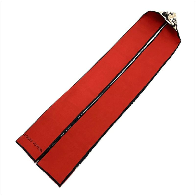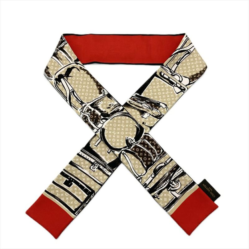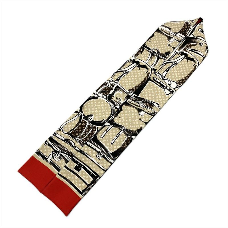 ルイヴィトン LOUIS VUITTON バンドー スカーフ シルク M73964 ベージュ MA0194 レッド ツイリー トランク スーツケース【中古】