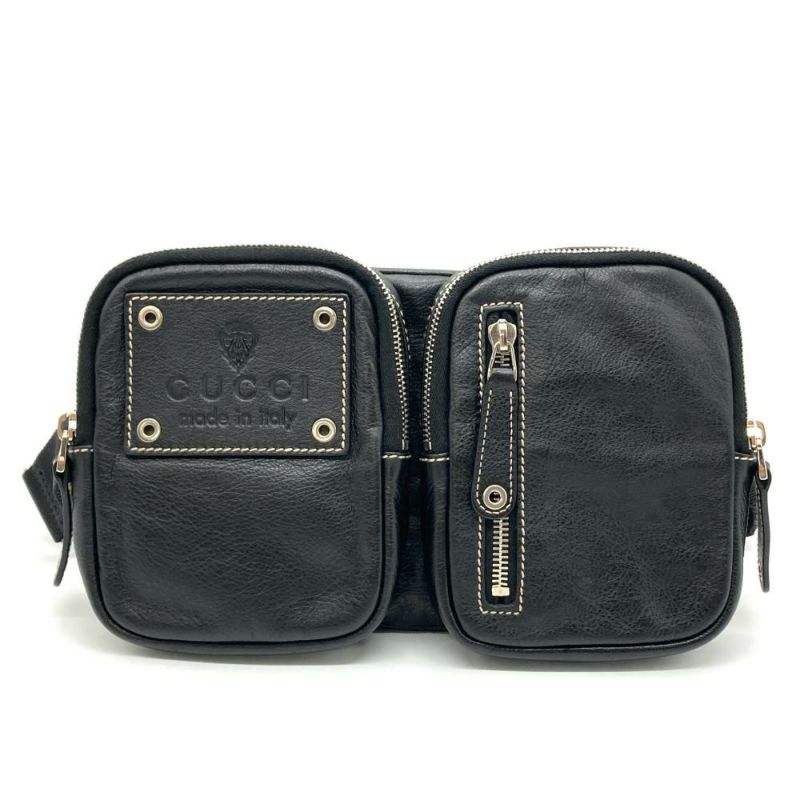 グッチ GUCCI ウエストバッグ ボディバッグ 2WAY レザー 201846 ブラック メンズ【中古】