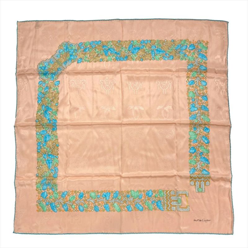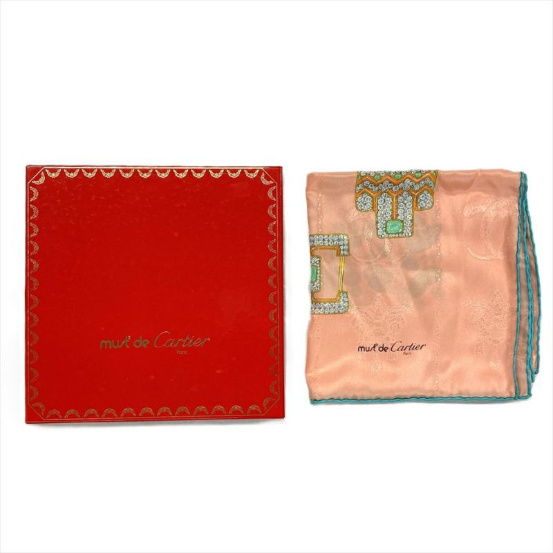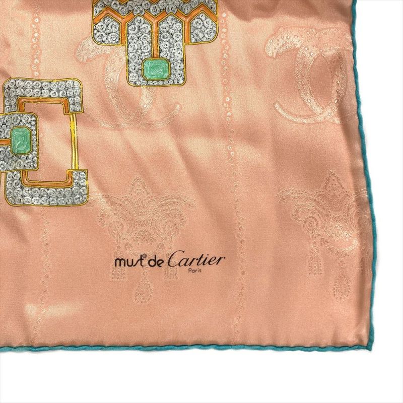 3. カルティエ Cartier マストドゥ ロゴ スカーフ ピンク 総柄【中古】