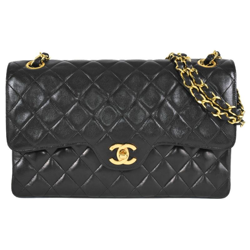 送料無料 シャネル CHANEL マトラッセ 25 Wフラップ チェーン ショルダーバッグ ラムスキン ブラック ゴールド金具 ココマーク ヴィンテージ レディース【中古】