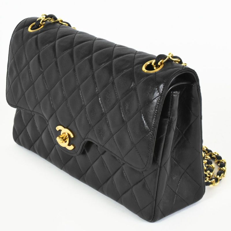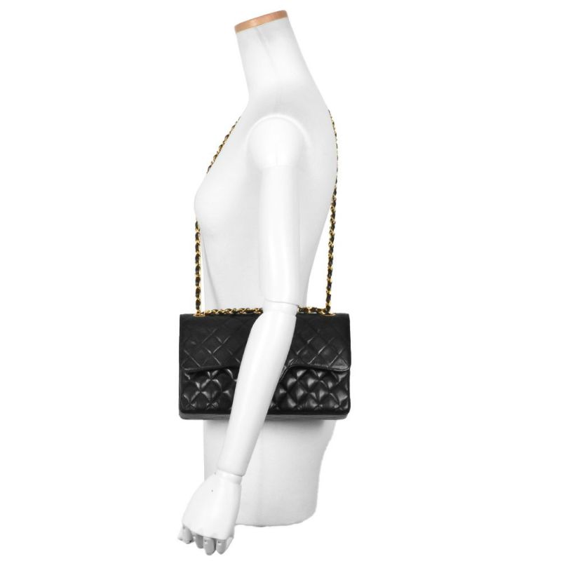 3. シャネル CHANEL マトラッセ 25 Wフラップ チェーン ショルダーバッグ ラムスキン ブラック ゴールド金具 ココマーク ヴィンテージ レディース【中古】