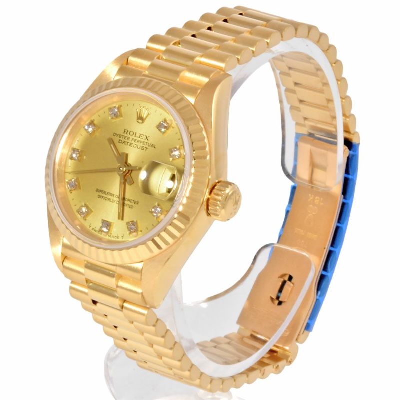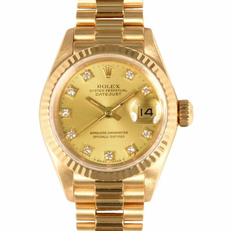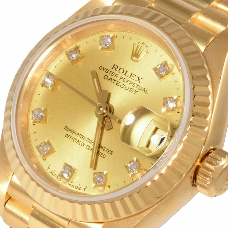 - ロレックス ROLEX 69178G デイトジャスト 92番台(1985年頃製造) 腕時計 シャンパン文字盤 10Pダイヤ K18 金無垢 レディース【中古】
