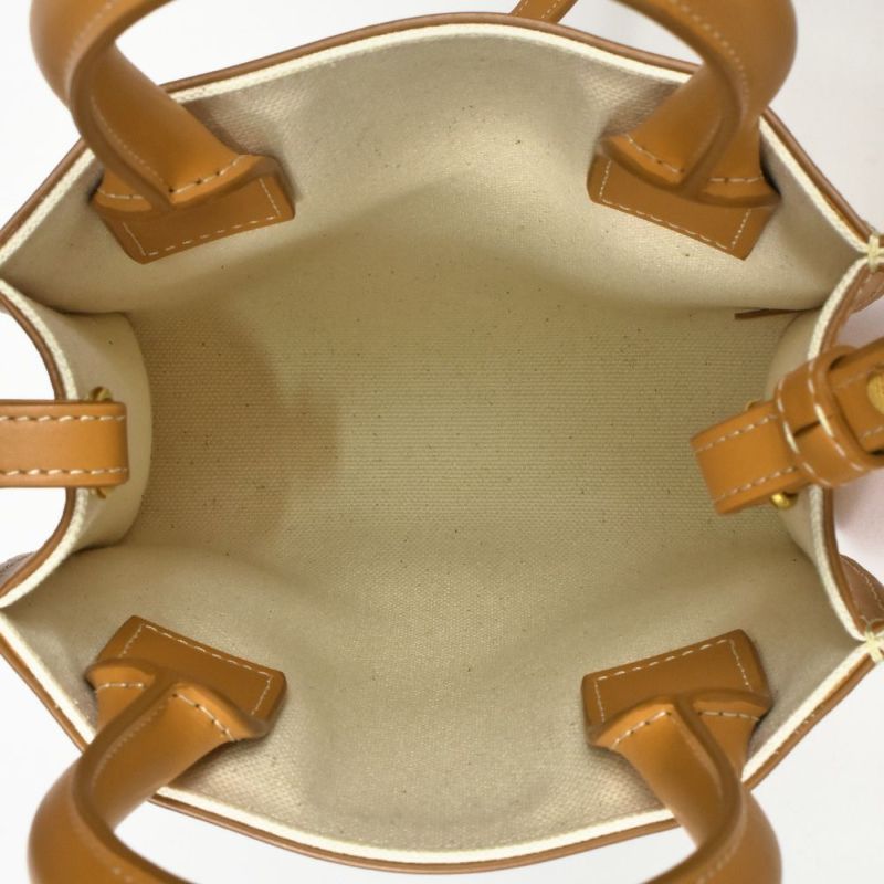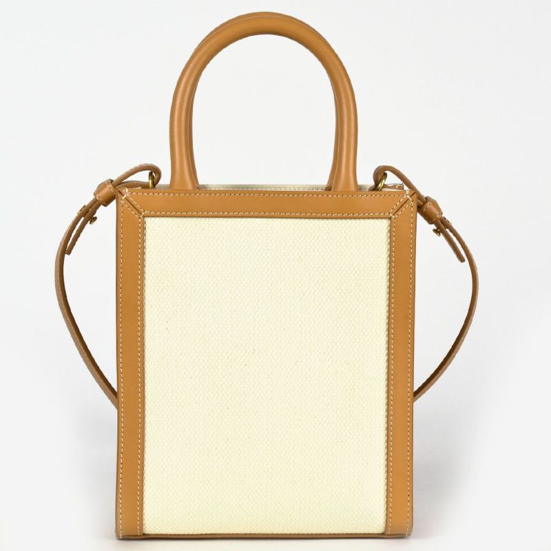 - セリーヌ CELINE ミニ バーティカルカバ ショルダーバッグ 2WAY キャンバス レザー 193302BNZ.02NT ナチュラル(ホワイト系) タン(ブラウン系) レザー【中古】