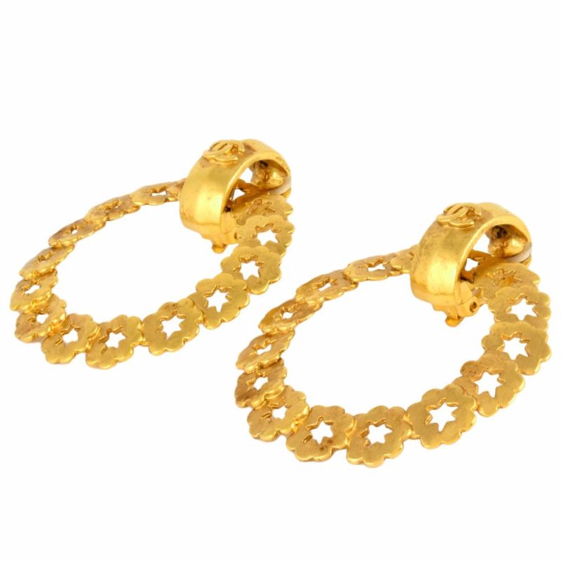 送料無料 シャネル CHANEL ココマーク スター フープ イヤリング 96P刻印 GPg ゴールド ヴィンテージ フラワー レディース【中古】